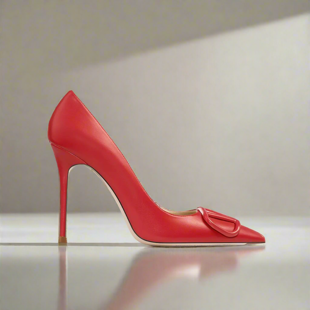 Step out in confidence with these stunning red heels that elevate your look and captivate all who see you. The luxurious leather construction provides a plush, supportive feel, while the matte finish and metal accent lend an air of sophistication.