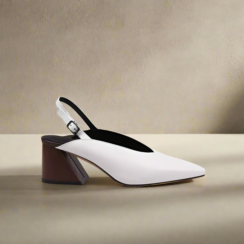 Elevate your style with the Arbela White Slingback Pumps - the ultimate fusion of sophistication and comfort.