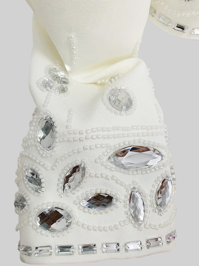 Indulge in luxury with our Carmen White Diamond Embellished Two Piece Dress. Featuring a long sleeve jacket adorned with lavish diamond details and a high collar, this set exudes sophistication. Complete with a back zipper and available in both mini and maxi skirt options. Elevate your style with this exclusive ensemble.