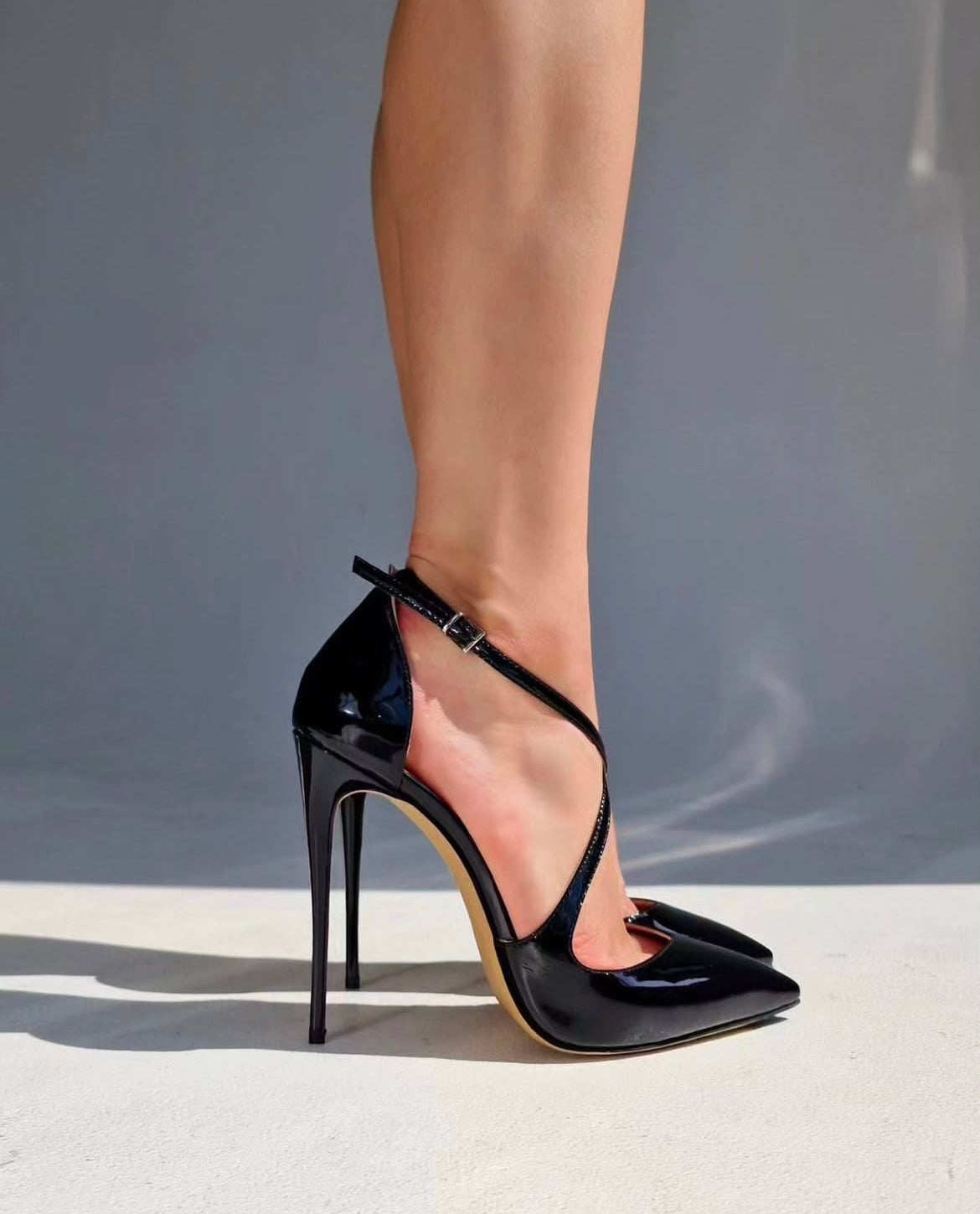 Experience the height of luxury with Edna Front Cross Straps Black Heels. Boasting a patent upper and leather lining, these heels exude sophistication and exclusivity. The leather insole and rubber outsole offer comfort and durability, while the black front cross strap adds a touch of elegance. With a choice of 12cm, 10cm, 8cm, and 6cm heel heights, elevate your style in these exquisite heels.