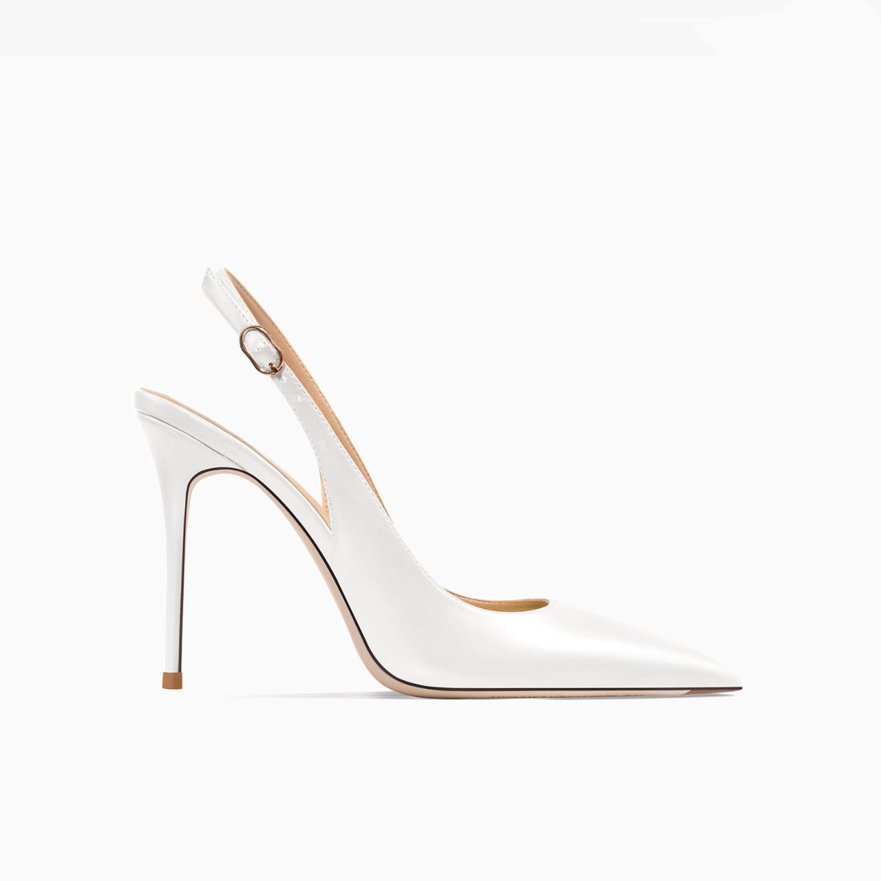 Step into the spotlight with the Felicity Matt White Slingback Sandal, a pair that seamlessly blends style and sophistication. Whether you're dressing up for a special occasion or looking to elevate your everyday wear, these high heels are designed to impress.