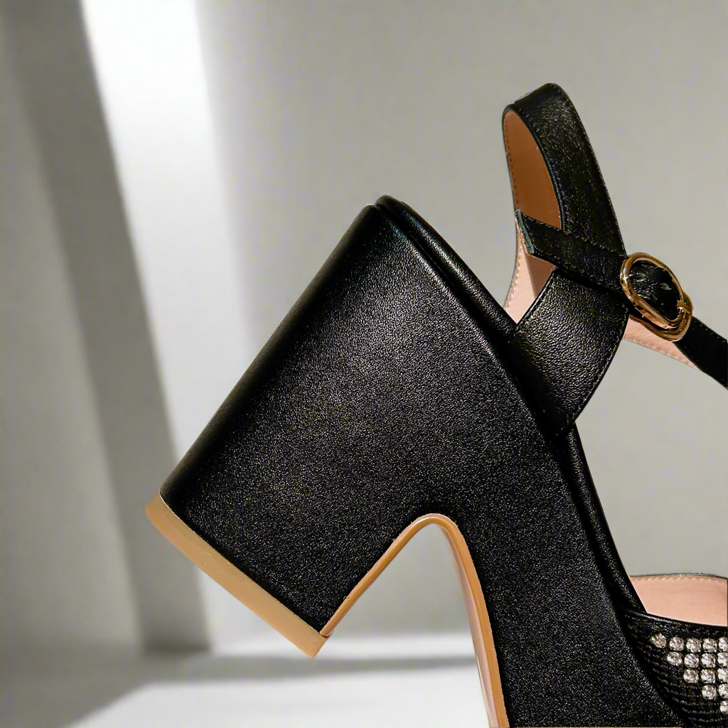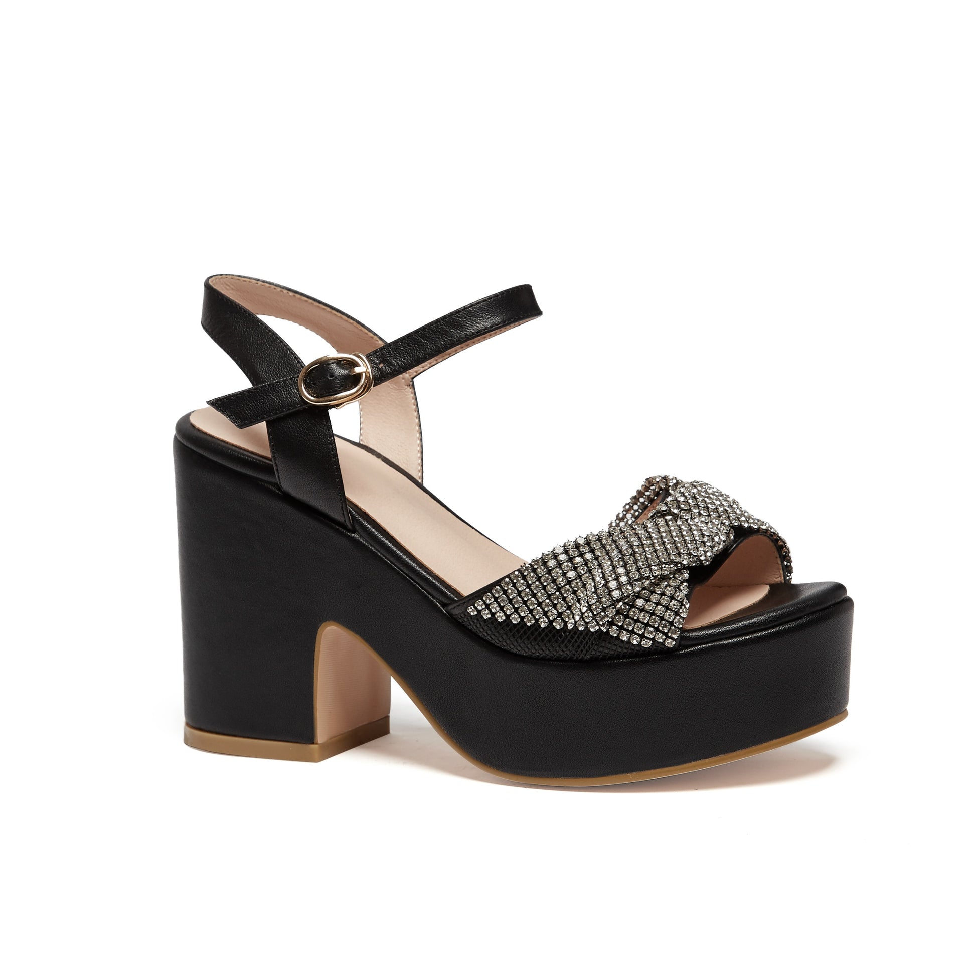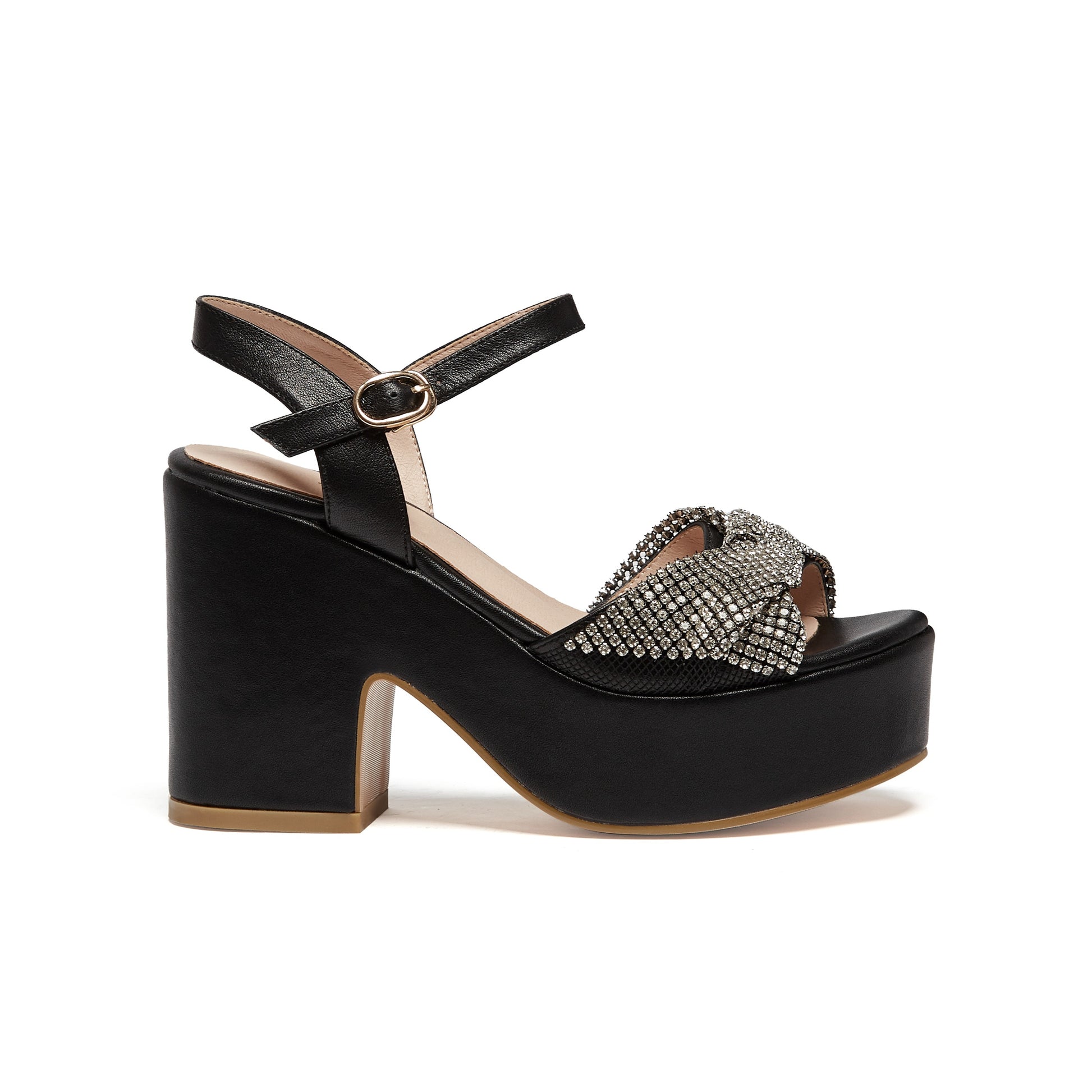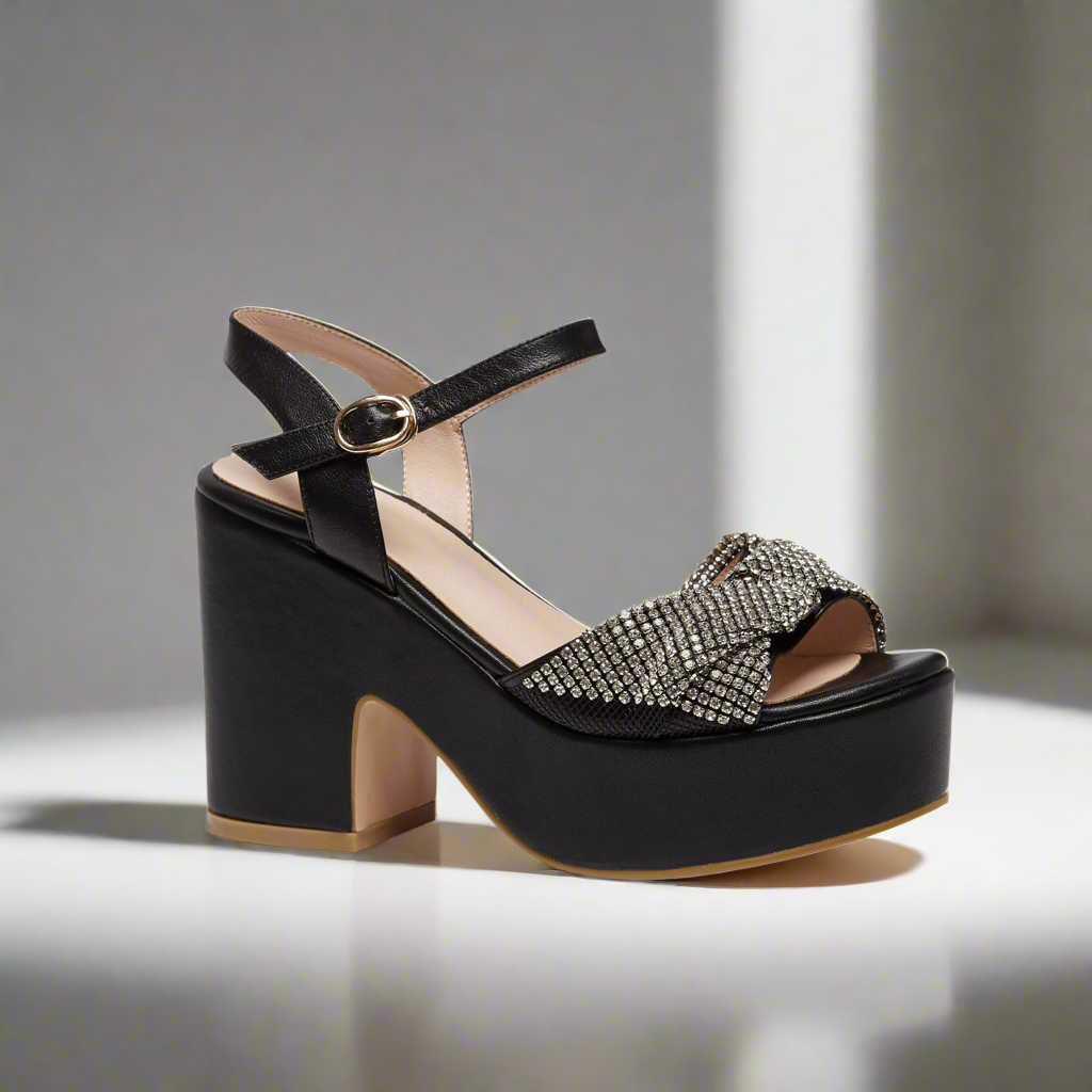 Indulge in the ultimate in luxurious, head-turning style with the Jackie Black Cyrstal Embellished Platform Sandals.