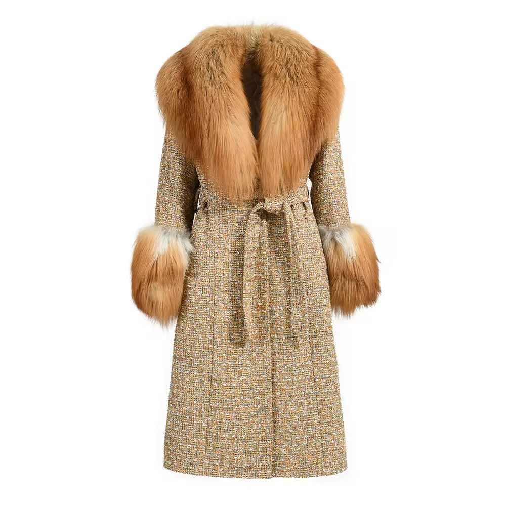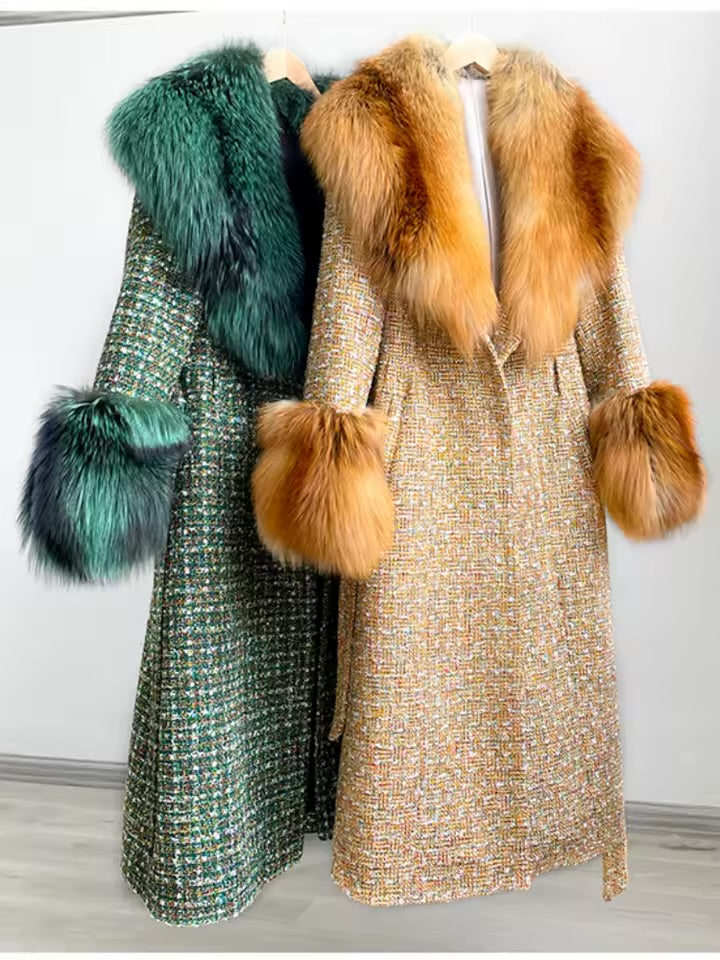Joanna Gold Multi-color Plaid Wool & Fur Coat