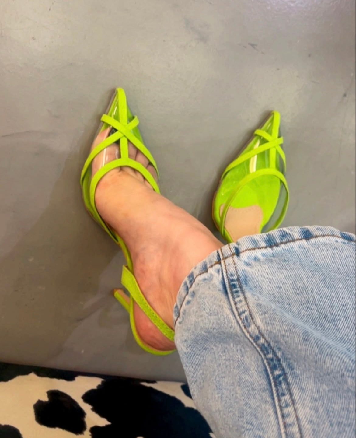 Khalidah Lime Slingback PVC Flock Leather Sandals