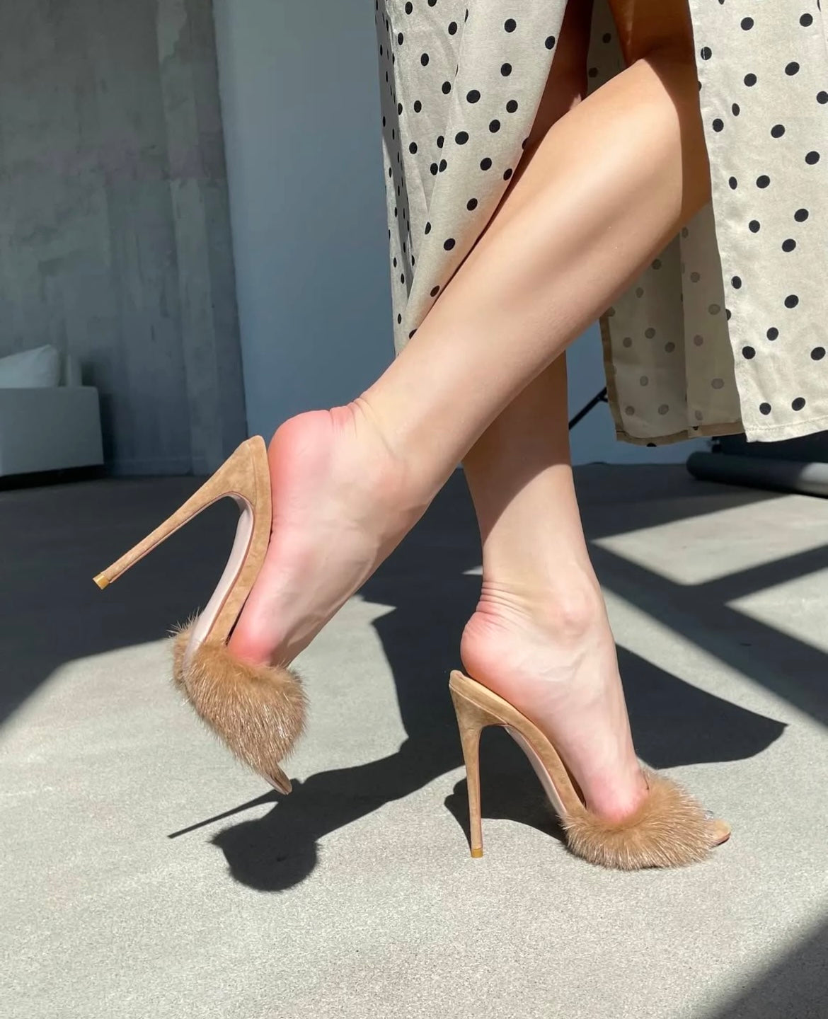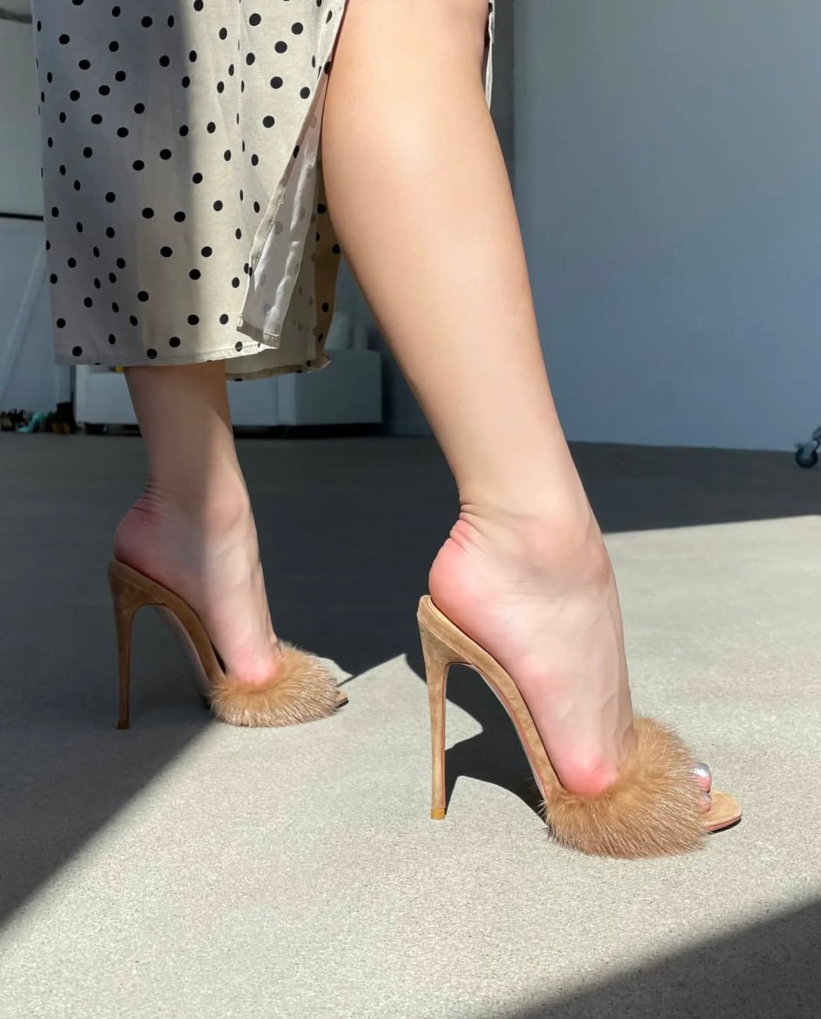 Step into effortless elegance with the captivating Kiki Flock Open Toe Brown Fur Mules. Crafted with premium materials and a sleek, slip-on silhouette, these mules will elevate your style to new heights.