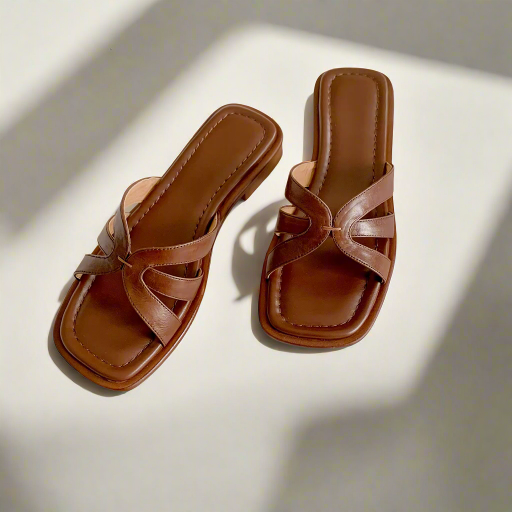 Luxurious comfort meets modern sophistication in the Nandi Brown Flat Mule Sandals