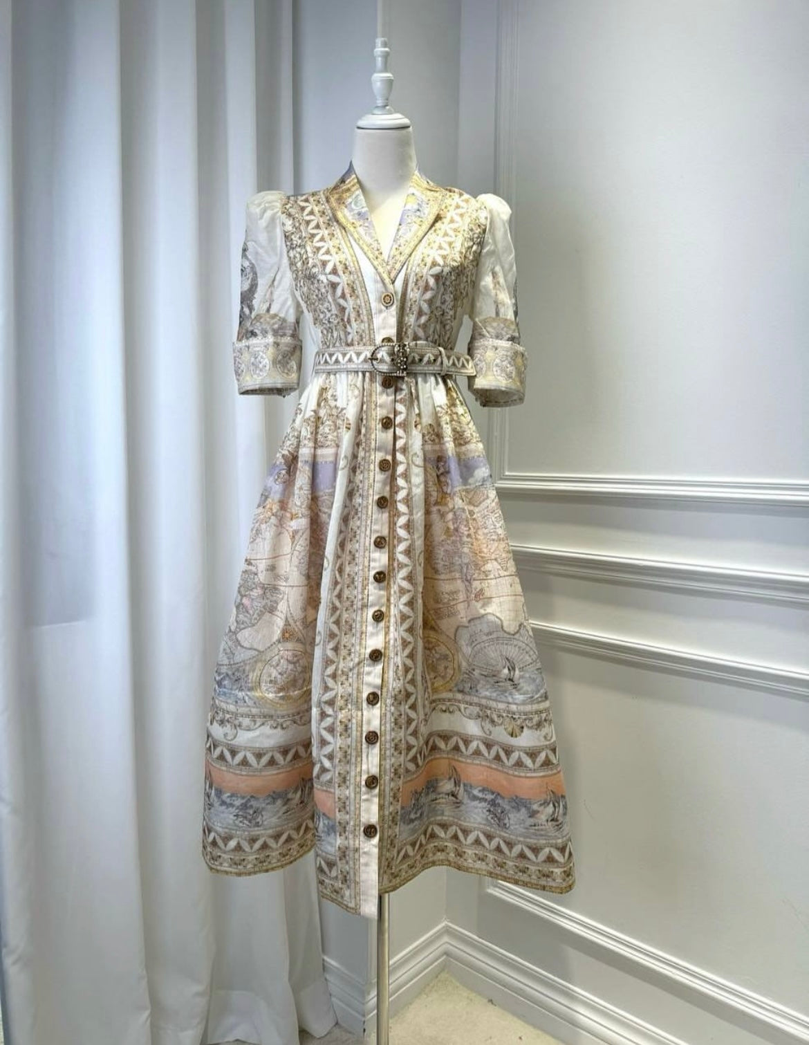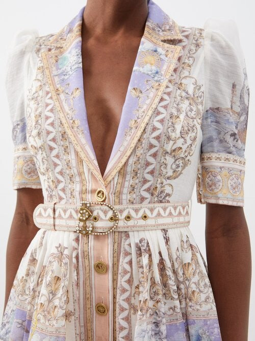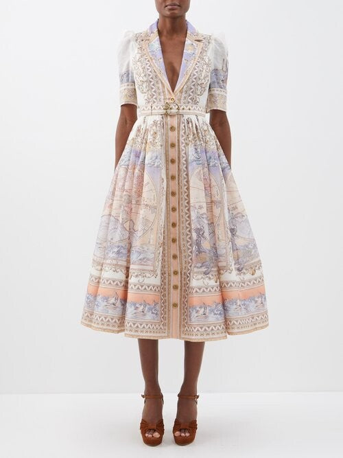 Queen Sheila Printed Linen-blend Midi Dress