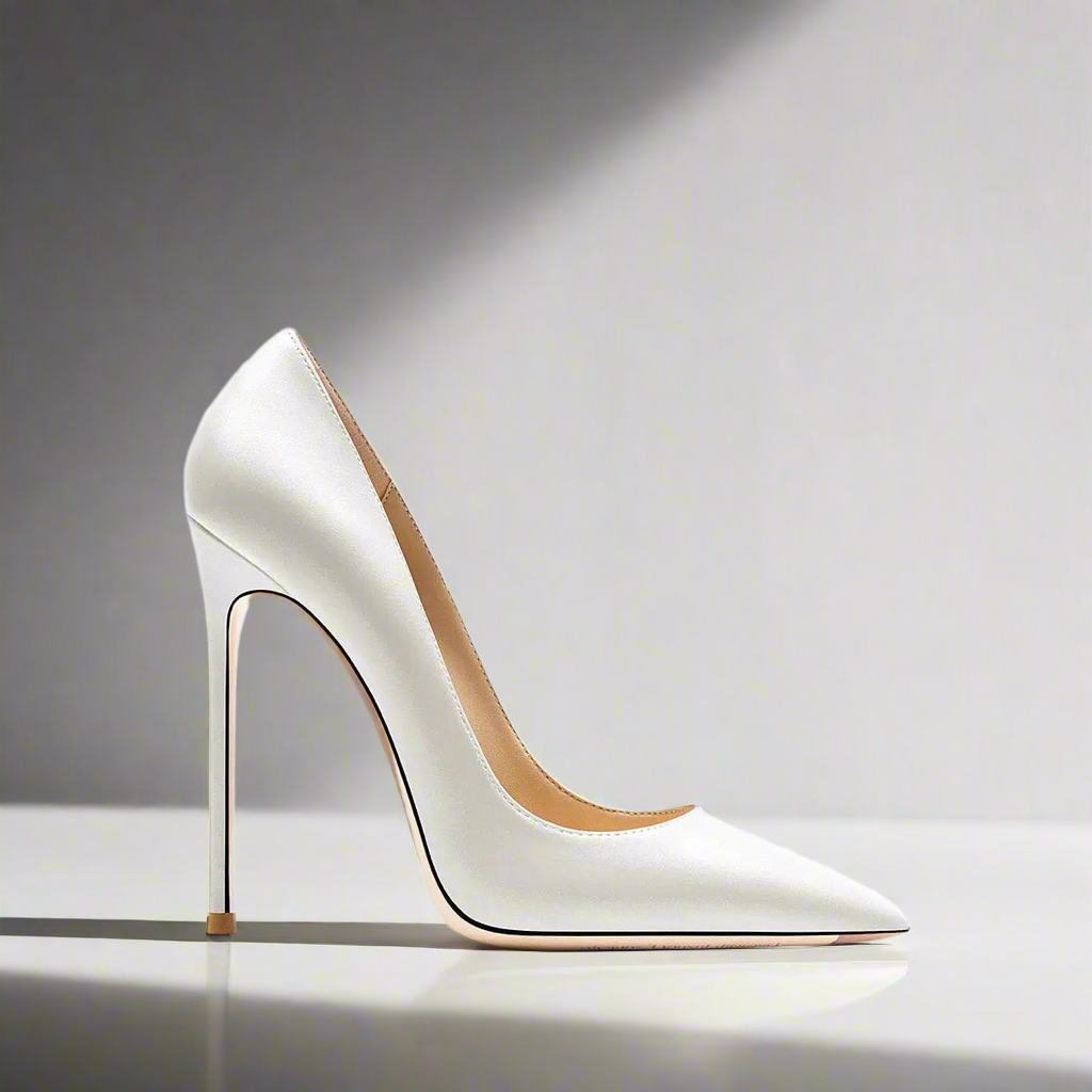 Prepare to turn heads with the Tess Matt White Stiletto - the epitome of modern elegance.