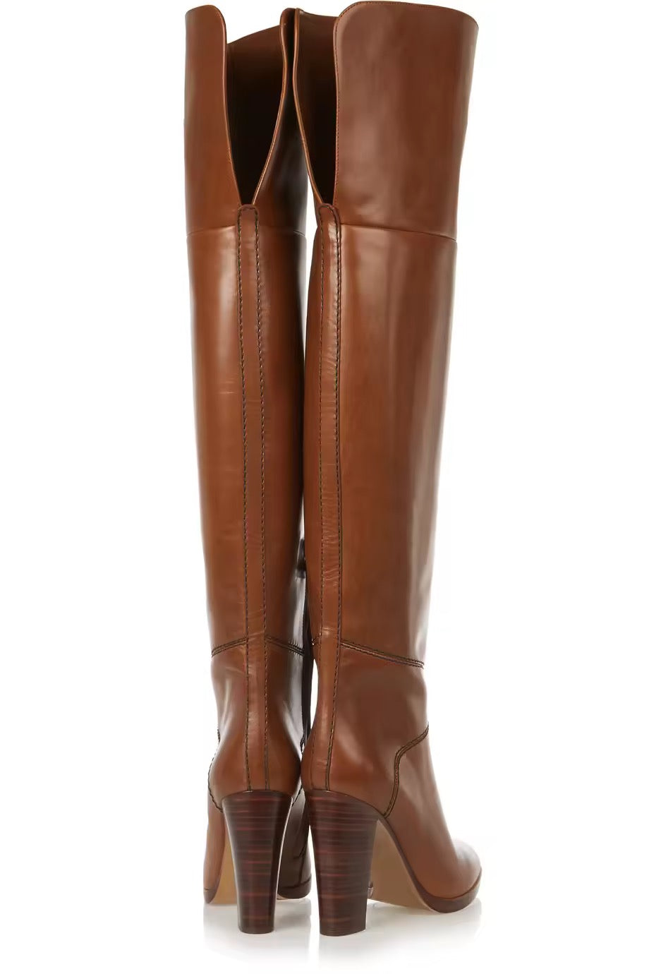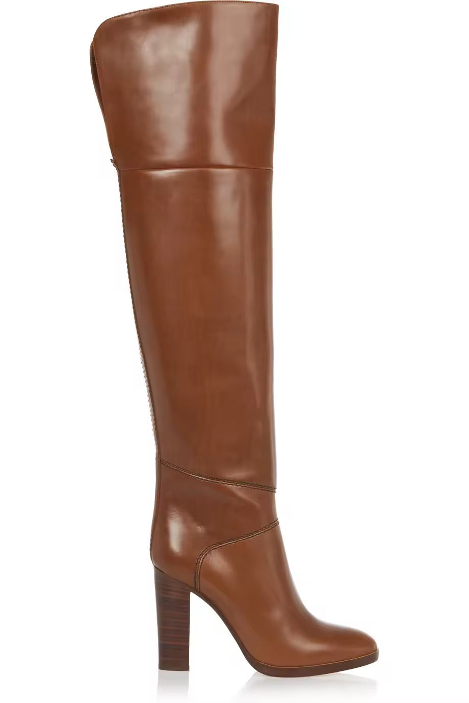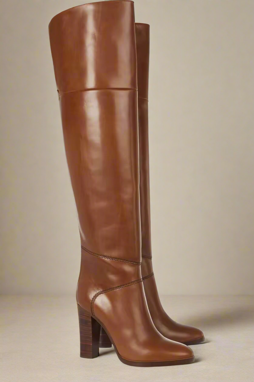 Agnes Brown Over Knee Leather Block Heel Boots