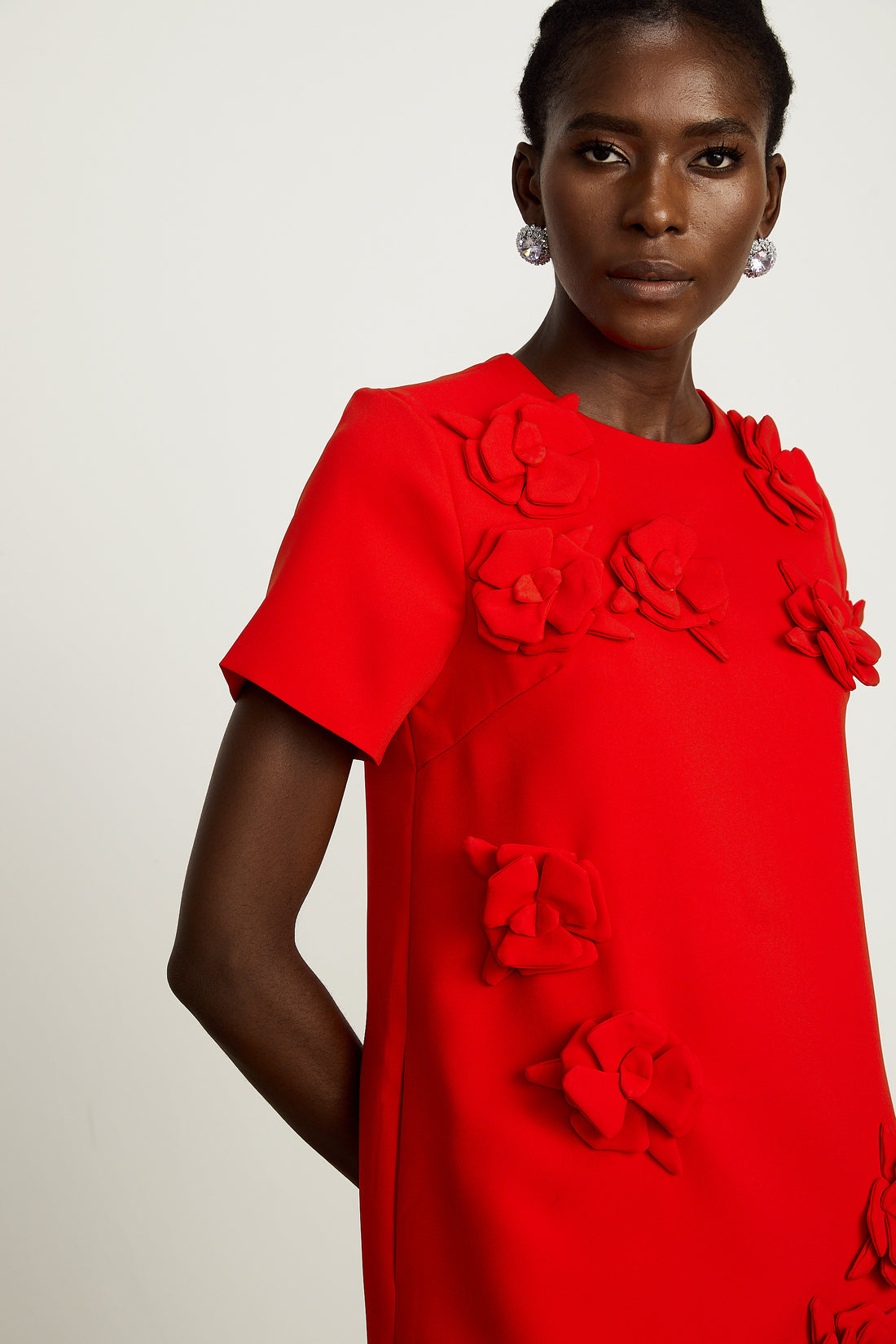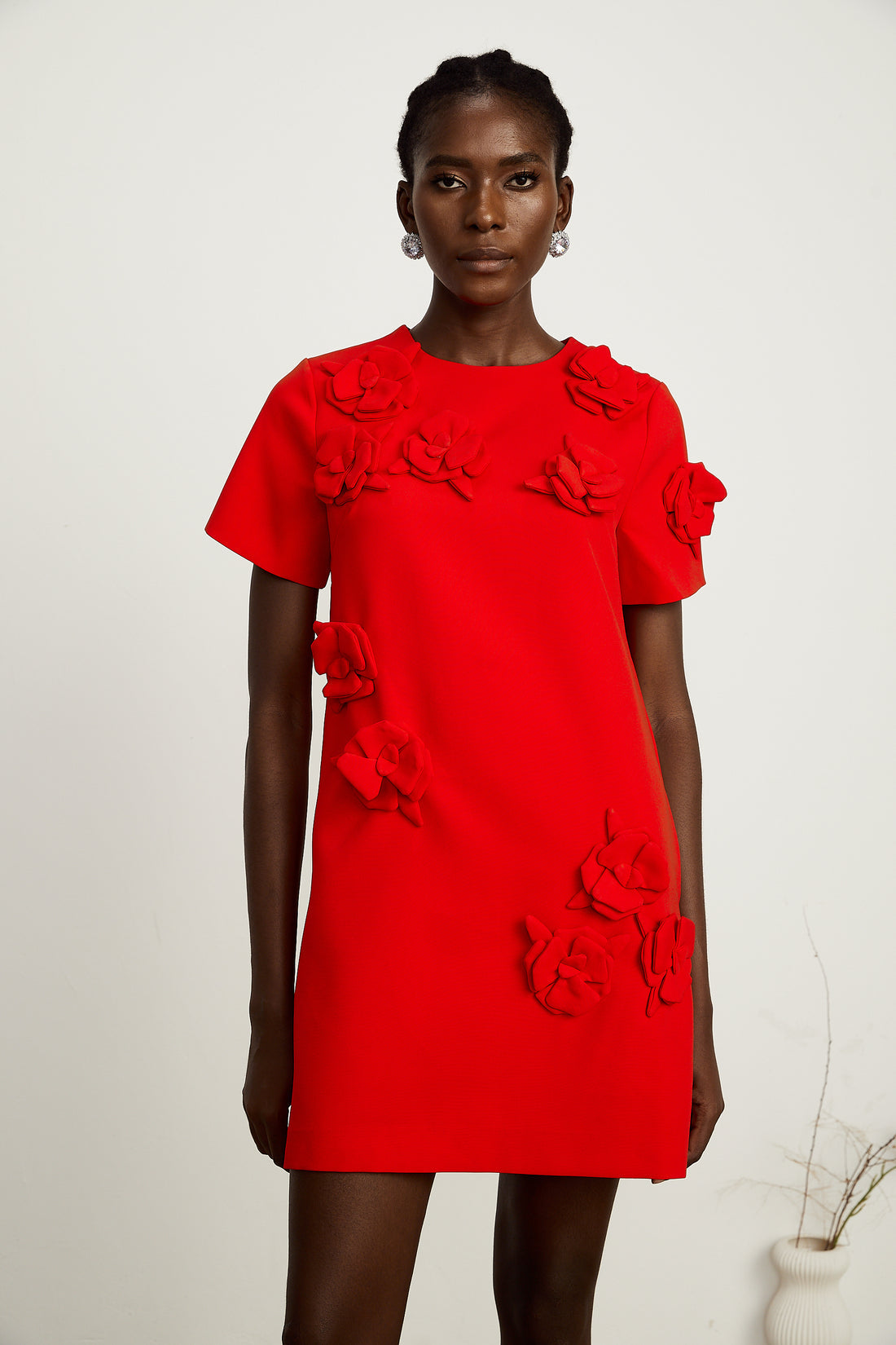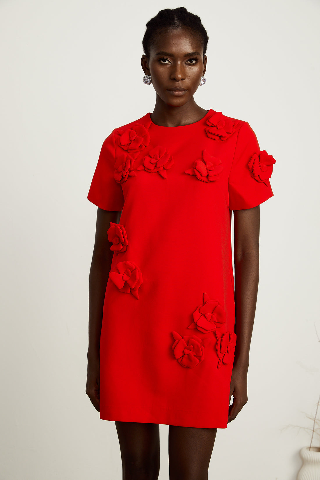 Britta Red Floral-Appliqué Short-Sleeve Mini Dress