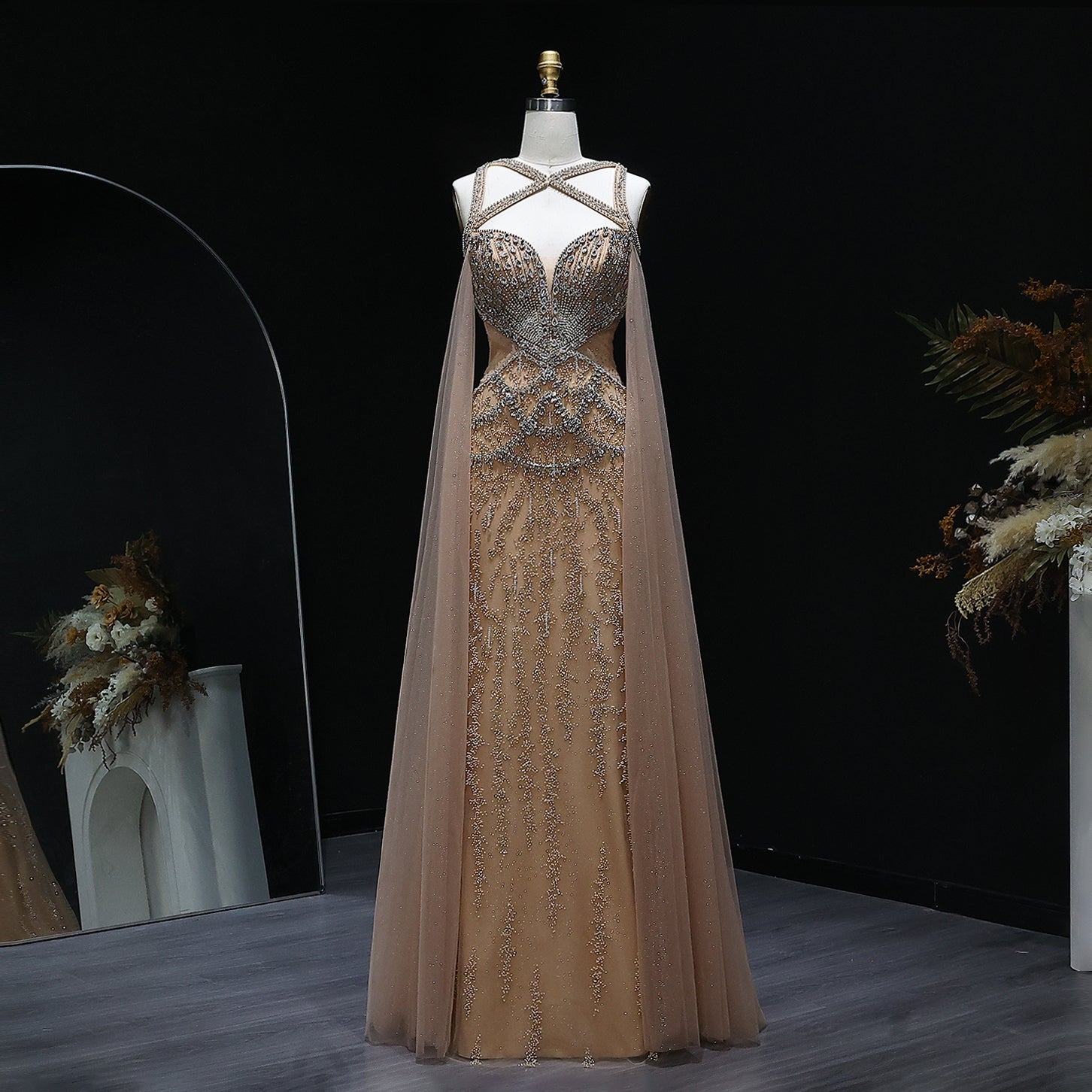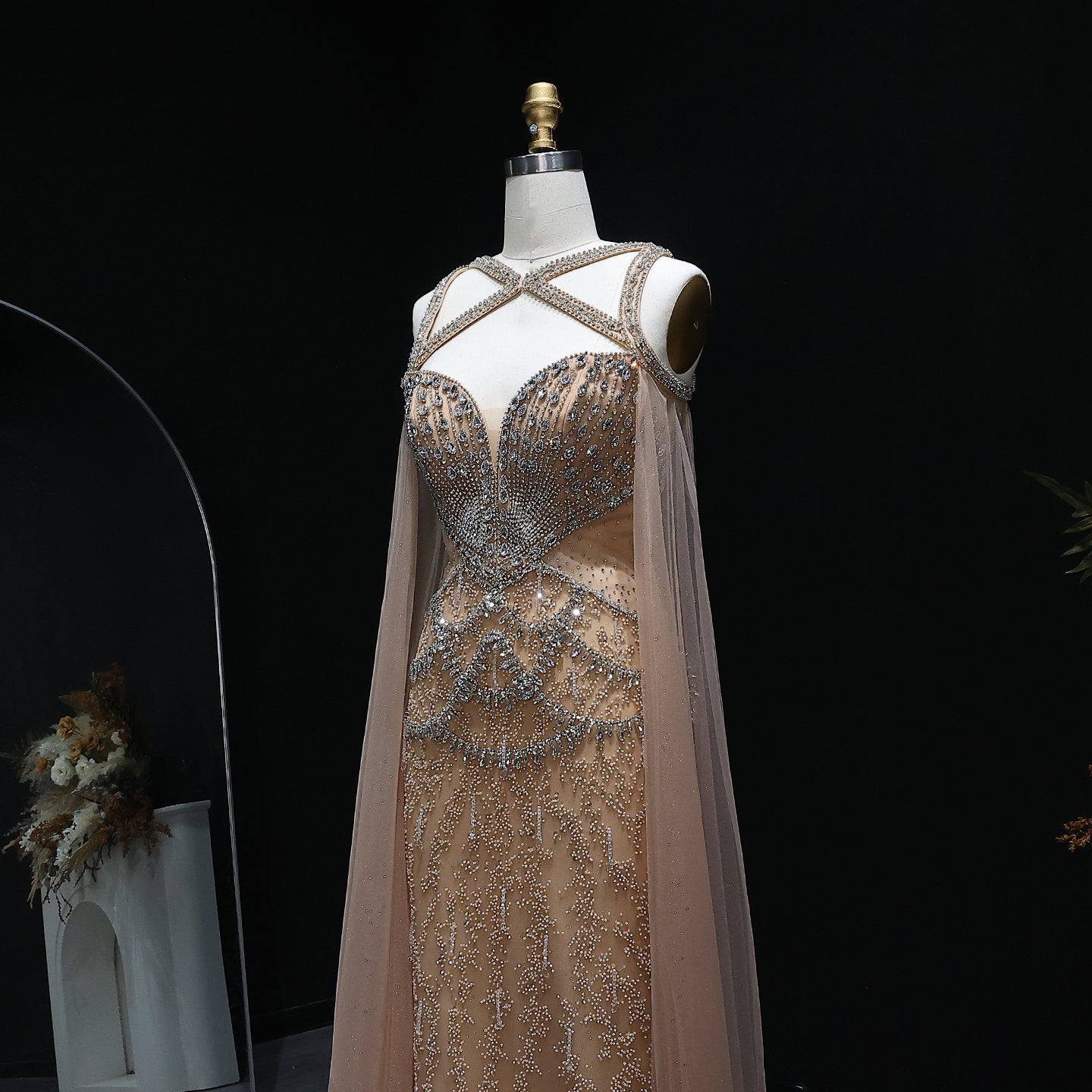 Cherub Luxury Crystal Evening Dress with Cape