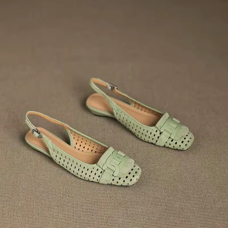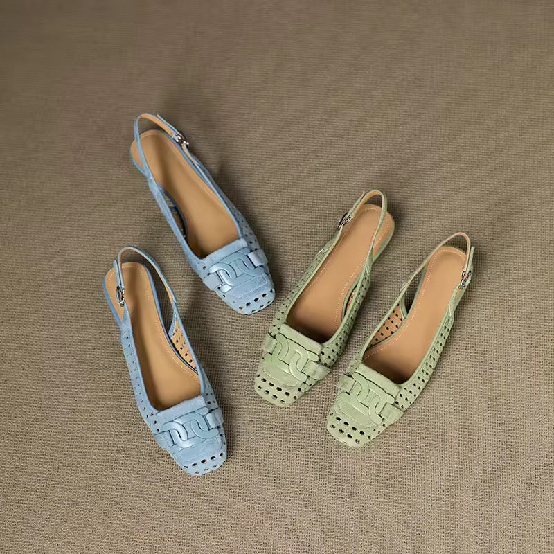 Discover refined sophistication with the Crochet Green Leather Buckle Slingback Pump. Meticulously designed with genuine leather suede and a lavish leather lining, this pump pairs a classic square toe silhouette with a stunning buckle accent, redefining luxury footwear.