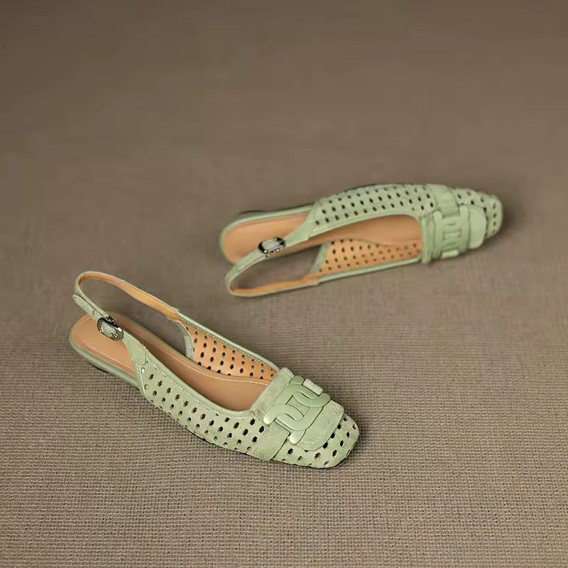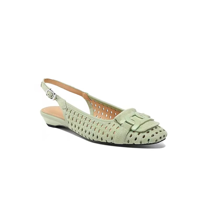Crochet Green Leather Buckle Slingback Pump