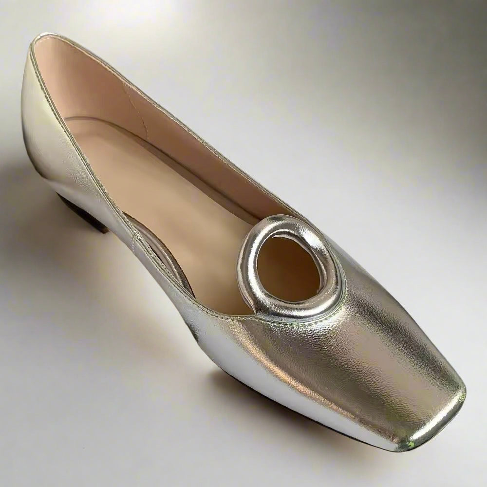 Cyma Silver square toe slip-on ballet flats