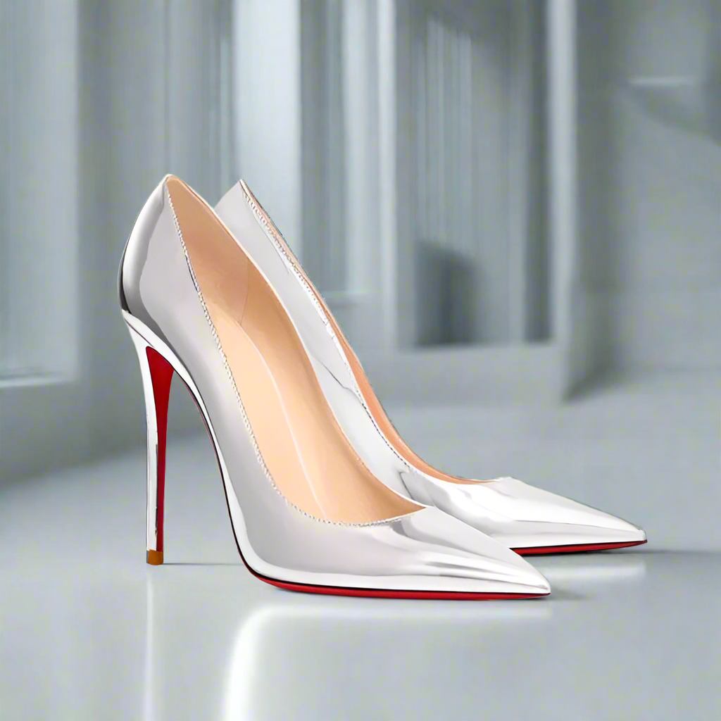 The Tabitha Red Bottom Silver Heels are the epitome of refined sophistication. The sleek patent leather upper and shimmering silver tone exude timeless elegance, while the luxurious leather interior and sturdy rubber sole ensure all-day wearability.