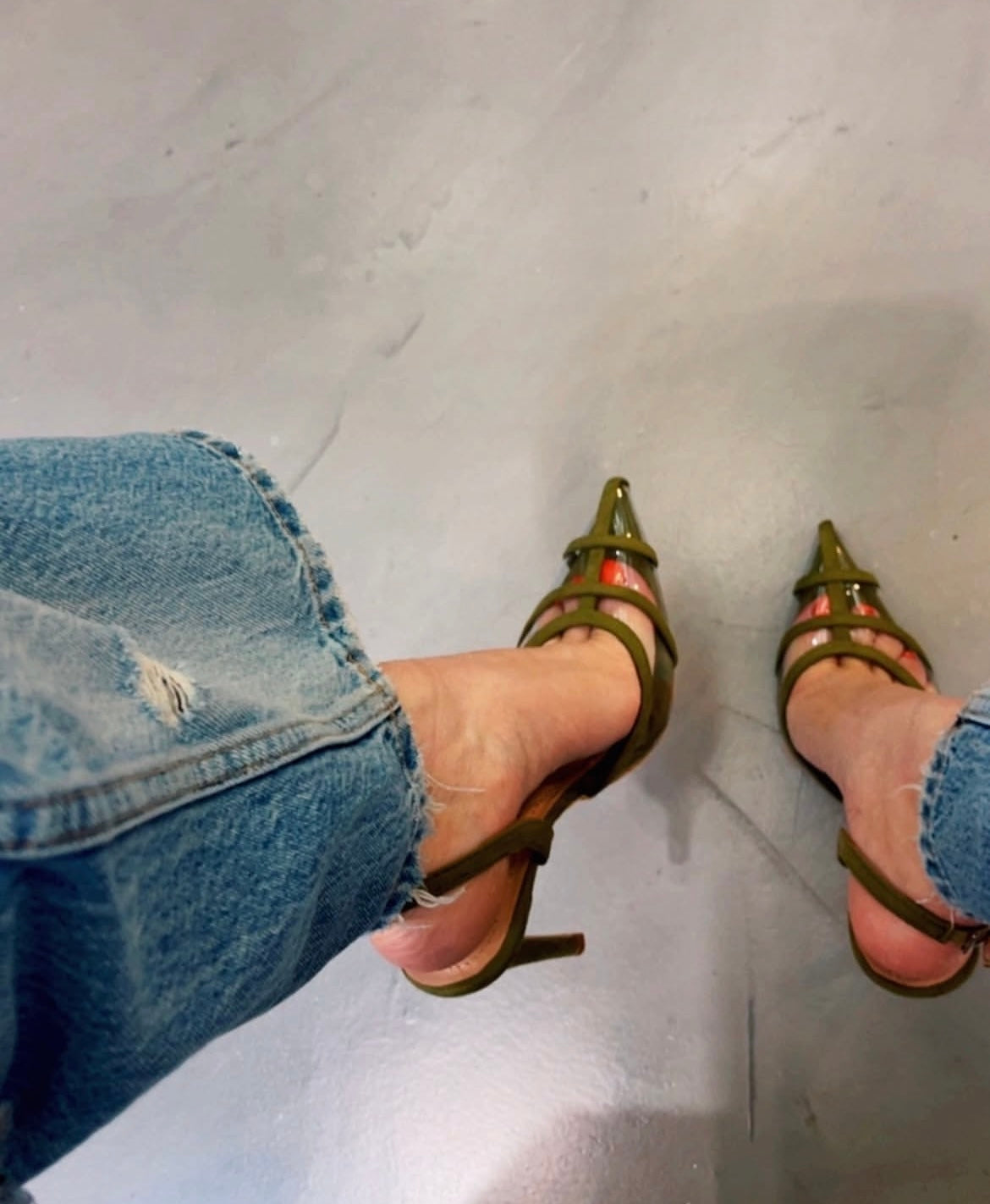 Khalidah Olive Green Slingback PVC Flock Leather Sandals