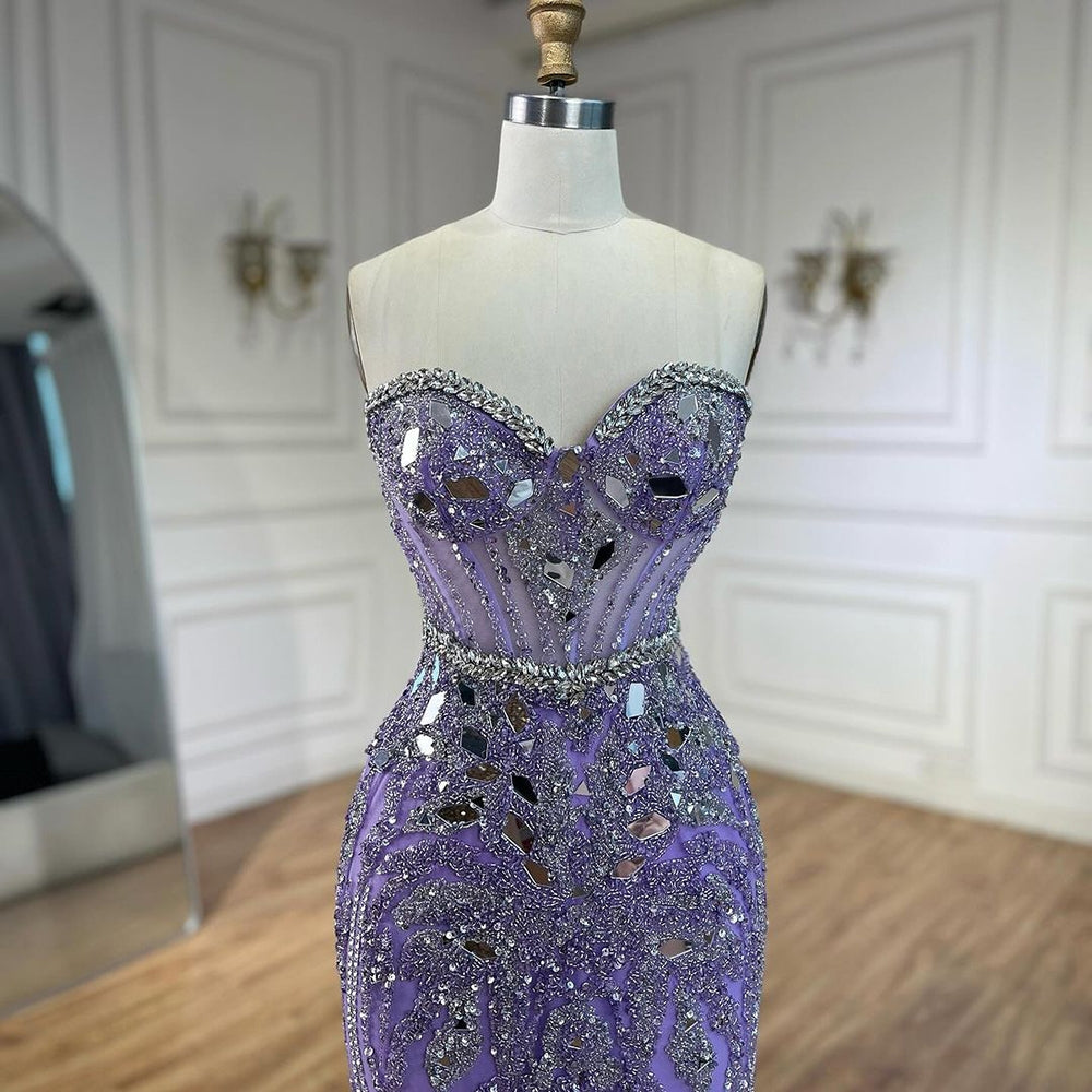 Meagan Purple Strapless Mermaid Beaded Evening Dress