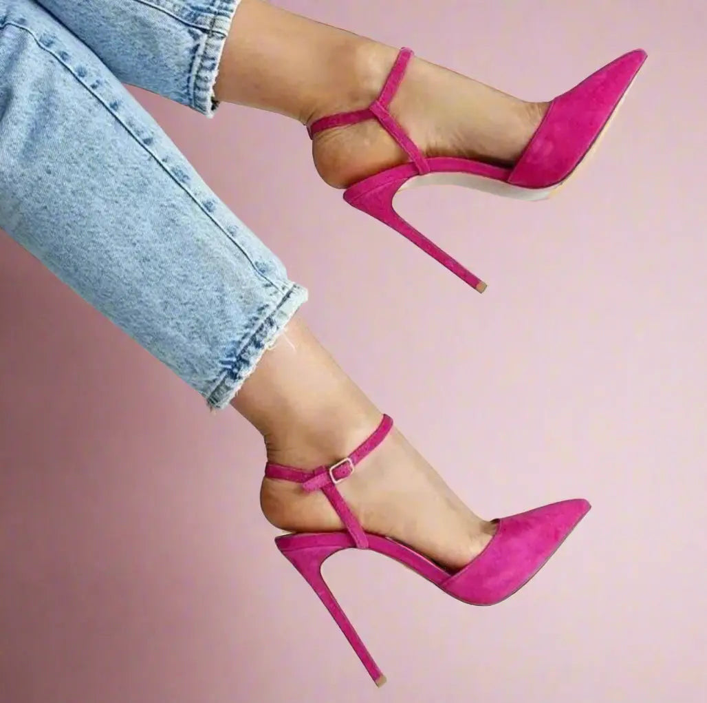 Step into elegance with the Nicika Pink Flock Slingback Sandals