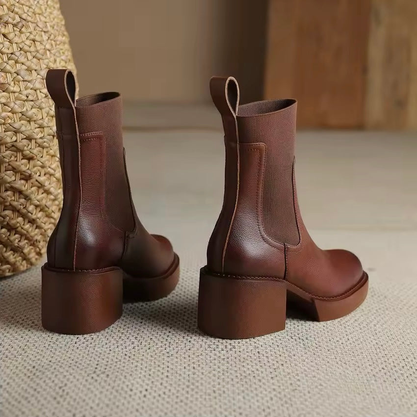 Shiloh Brown Platform Leather Boots