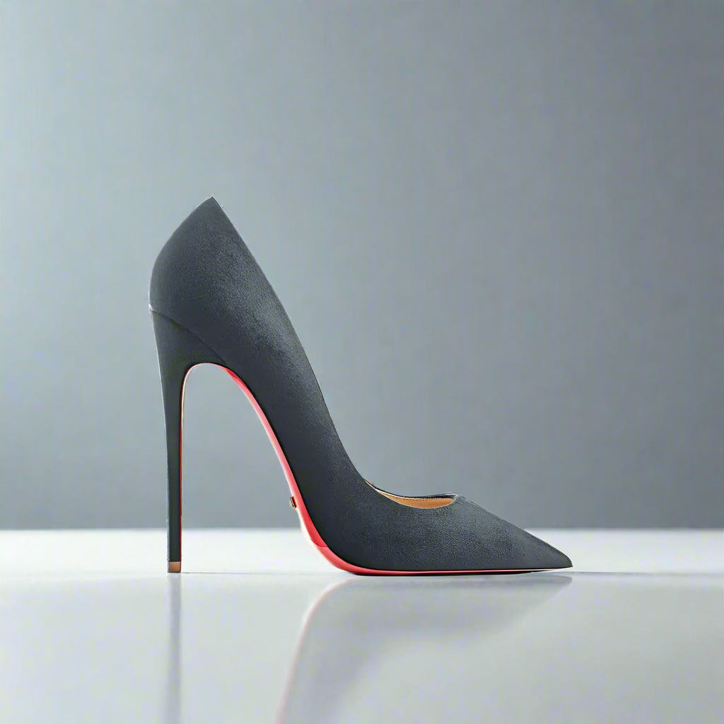 Make a striking impression with the Tabitha Flock Grey Heels.