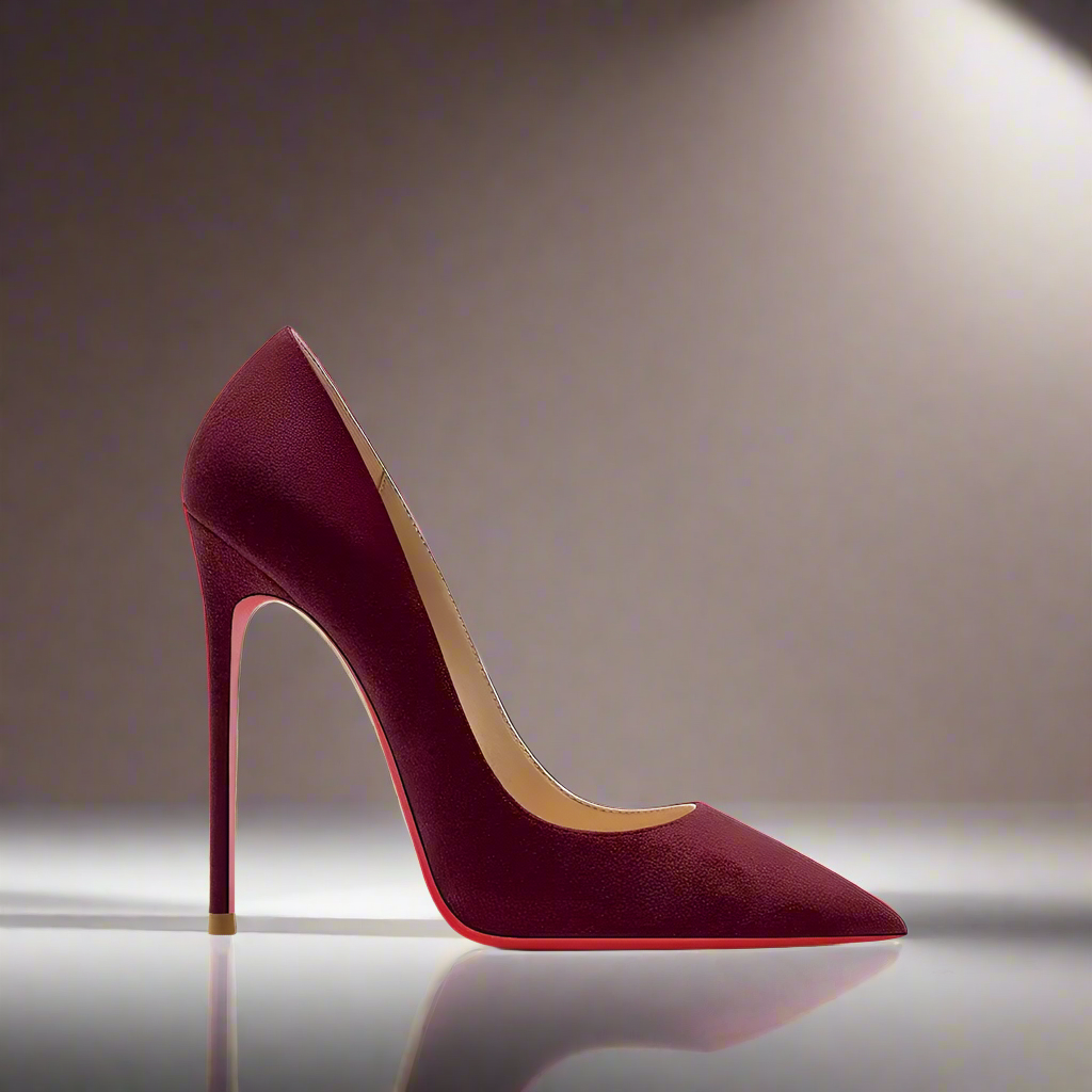 Step into the spotlight with the captivating Tabitha flock Maroon Heels. Crafted from premium flock and kid leather, these heels exude a luxurious, velvety texture that commands attention.