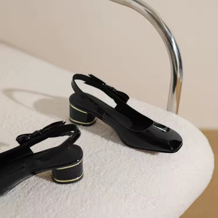 Tallit Black Chunky Heel Slingback Sandals